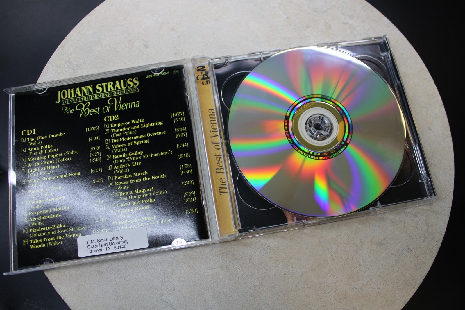 Vienna Philharmonic – Johann Strauss$11.99 ITEM ID: 51590Buy Here, or Buy From Our eBay Store1 in stock Vienna Philharmonic - Johann Strauss quantity Add to cart All items in-hand and ready to ship FREE DOMESTIC SHIPPING on all orders Customers Rate us on eBay 10/10! Category: CDs Pinterest Facebook Twitter Reddit Description Additional information Description Vienna Philharmonic – Johann Strauss music CD, released in 1998 Pinterest Facebook Twitter Reddit Additional information Weight 5 lbs Dimensions 9 × 6 × 1 in Condition Very Good Genre Classical UPC 0028945973029 Related products Lorrie Morgan – Greater Need CD $5.99 Add to cart Jim Horn – Neon Nights $8.99 Add to cart Anita Barker – Rhythm of Love CD $4.99 Add to cart Erin Jacobsen – Hour of Pearl $8.99 Add to cart Any questions about this product? Or do you need any help ordering? Feel free to get in touch with our support department at support@locla.co or use our contact form. We're happy to help!