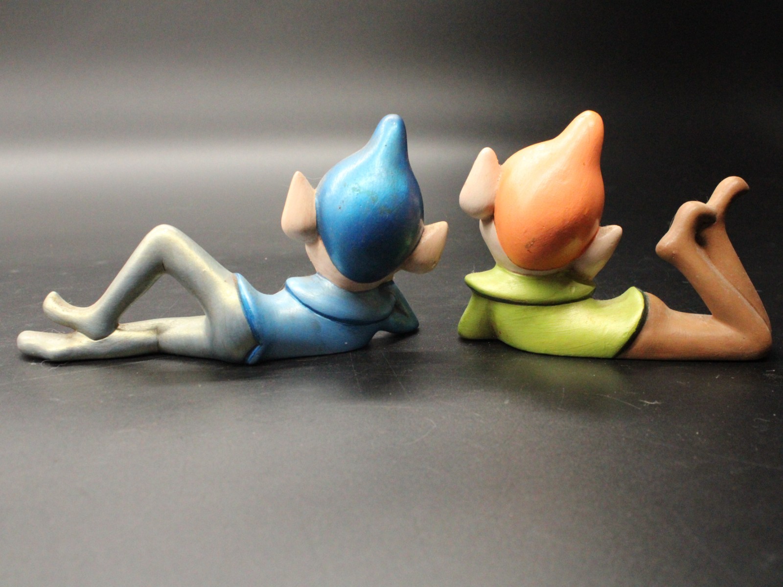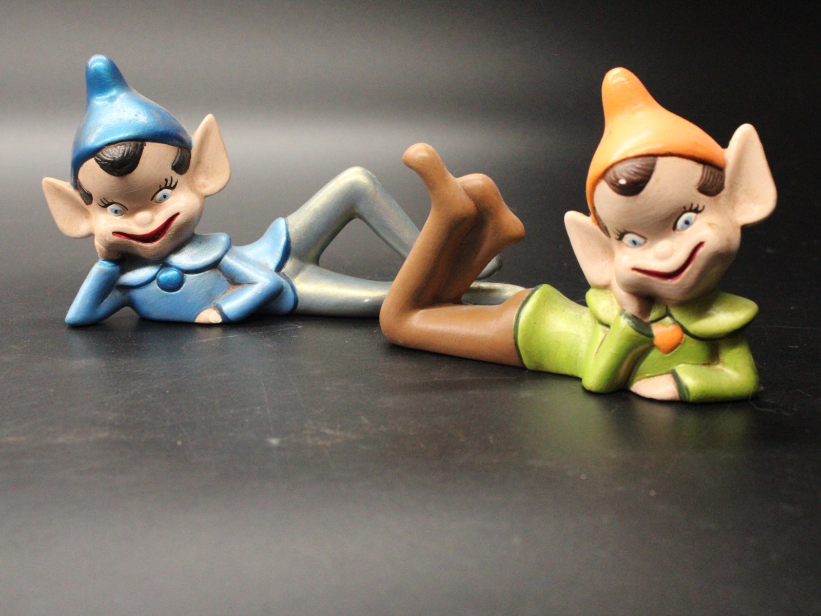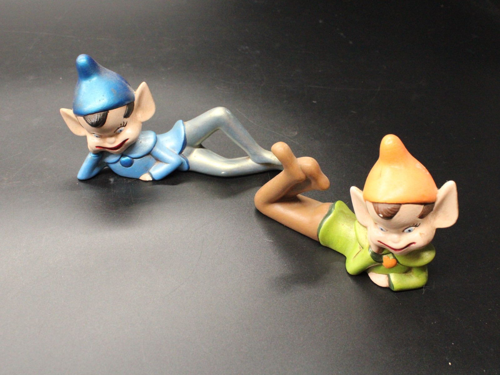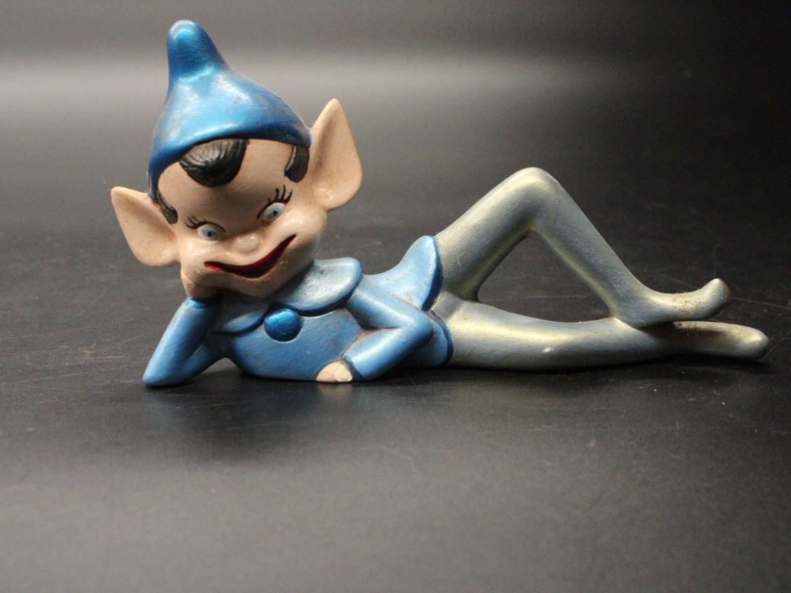Vintage Holiday Chalkware Green Blue Pixie Elf on Shelf Sitter LMS ’82