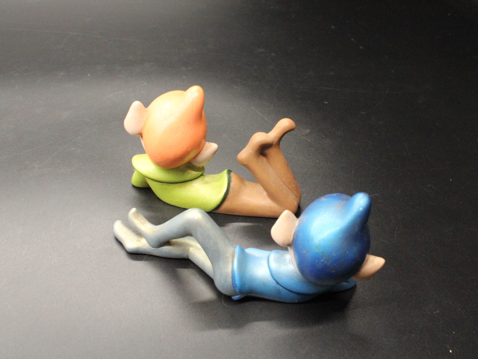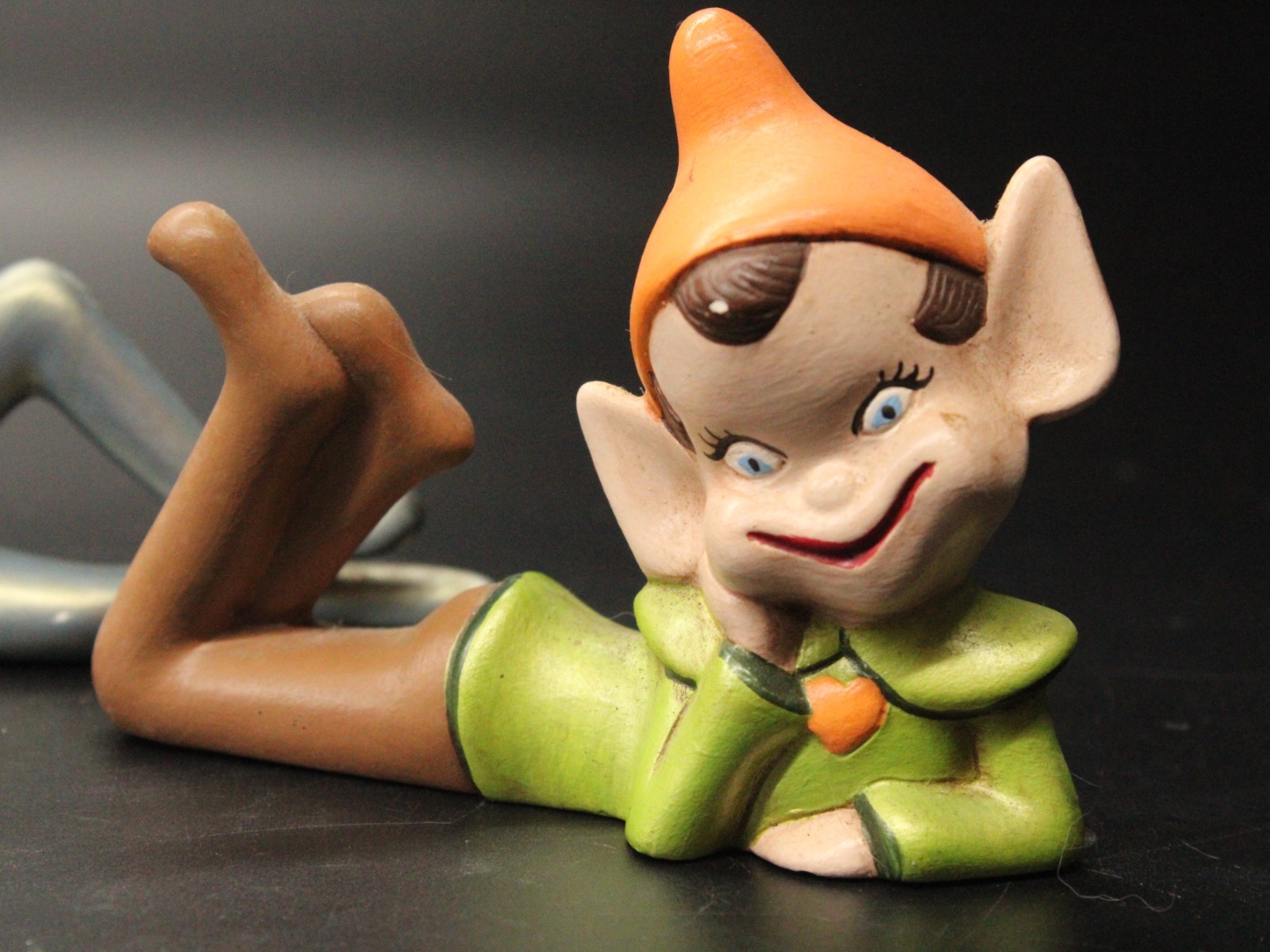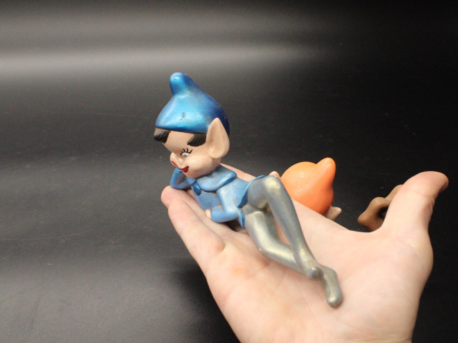 Vintage Holiday Chalkware Green Blue Pixie Elf on Shelf Sitter LMS ’82