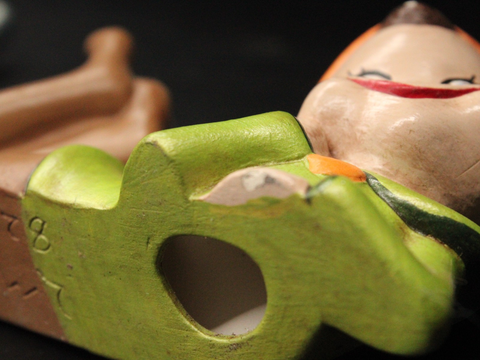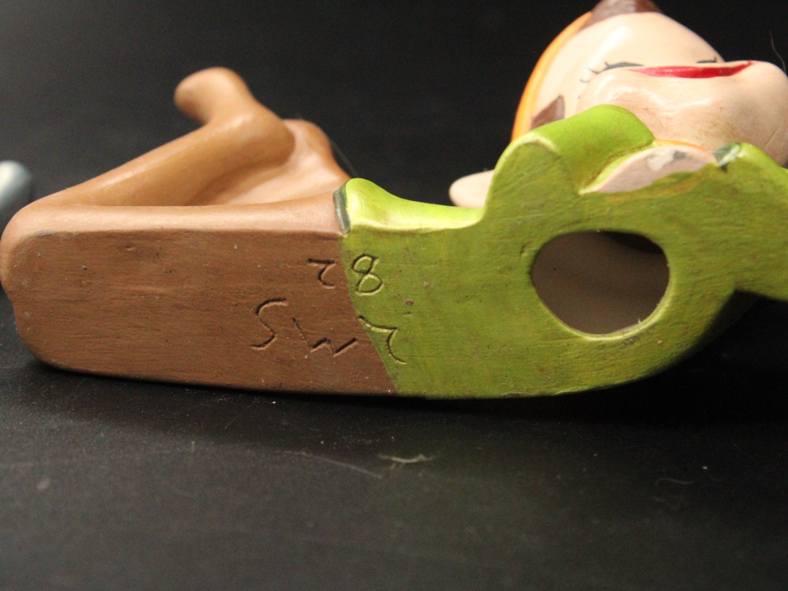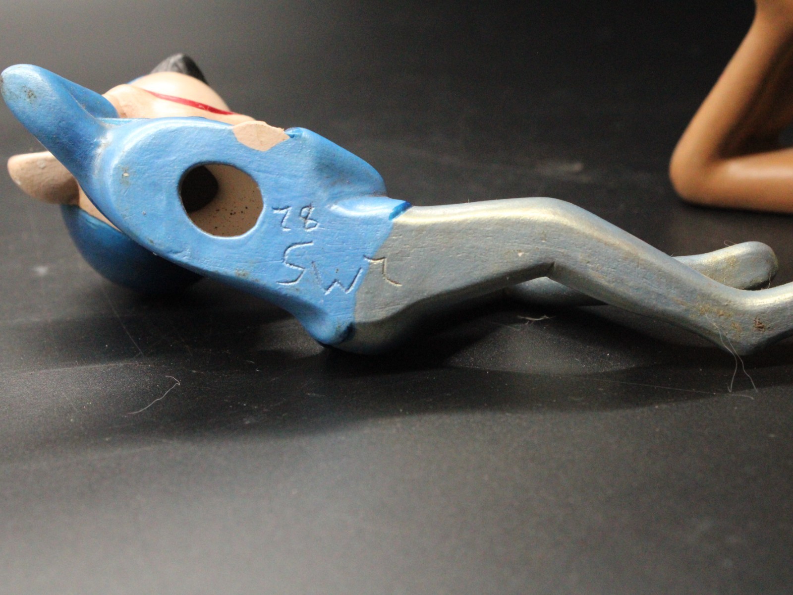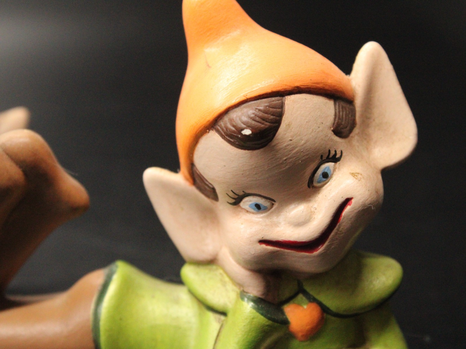 Vintage Holiday Chalkware Green Blue Pixie Elf on Shelf Sitter LMS ’82