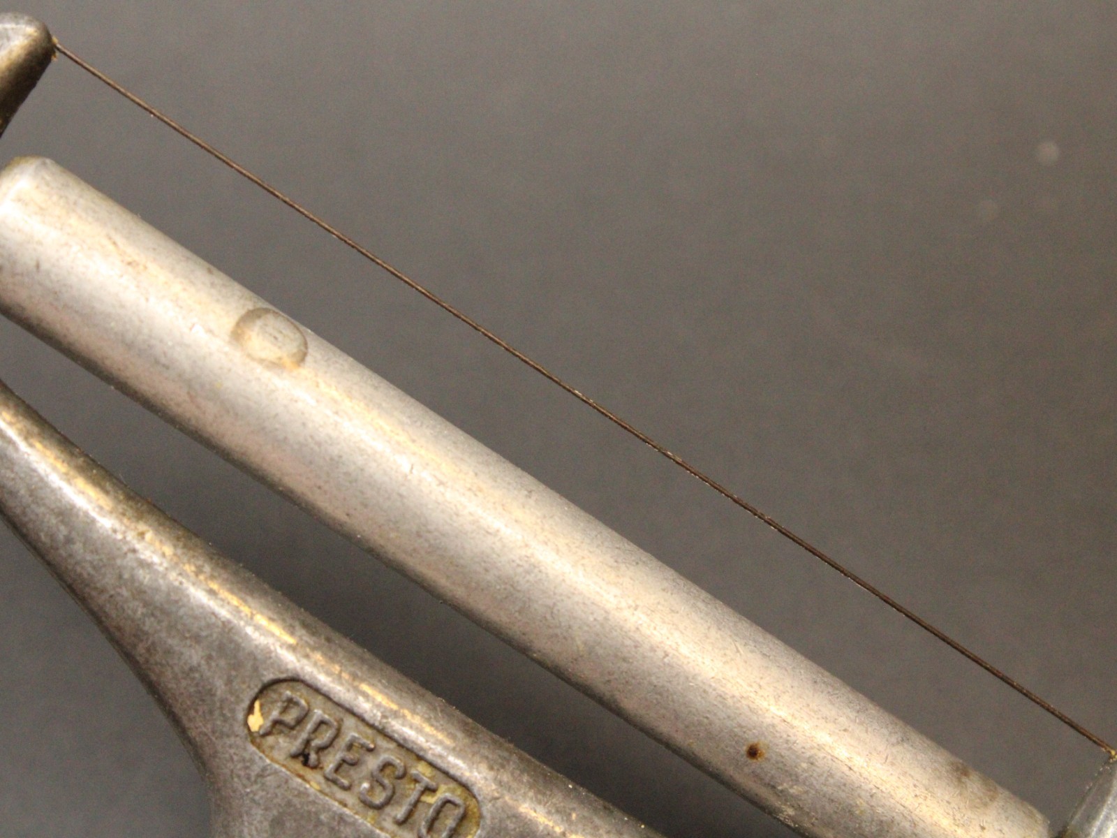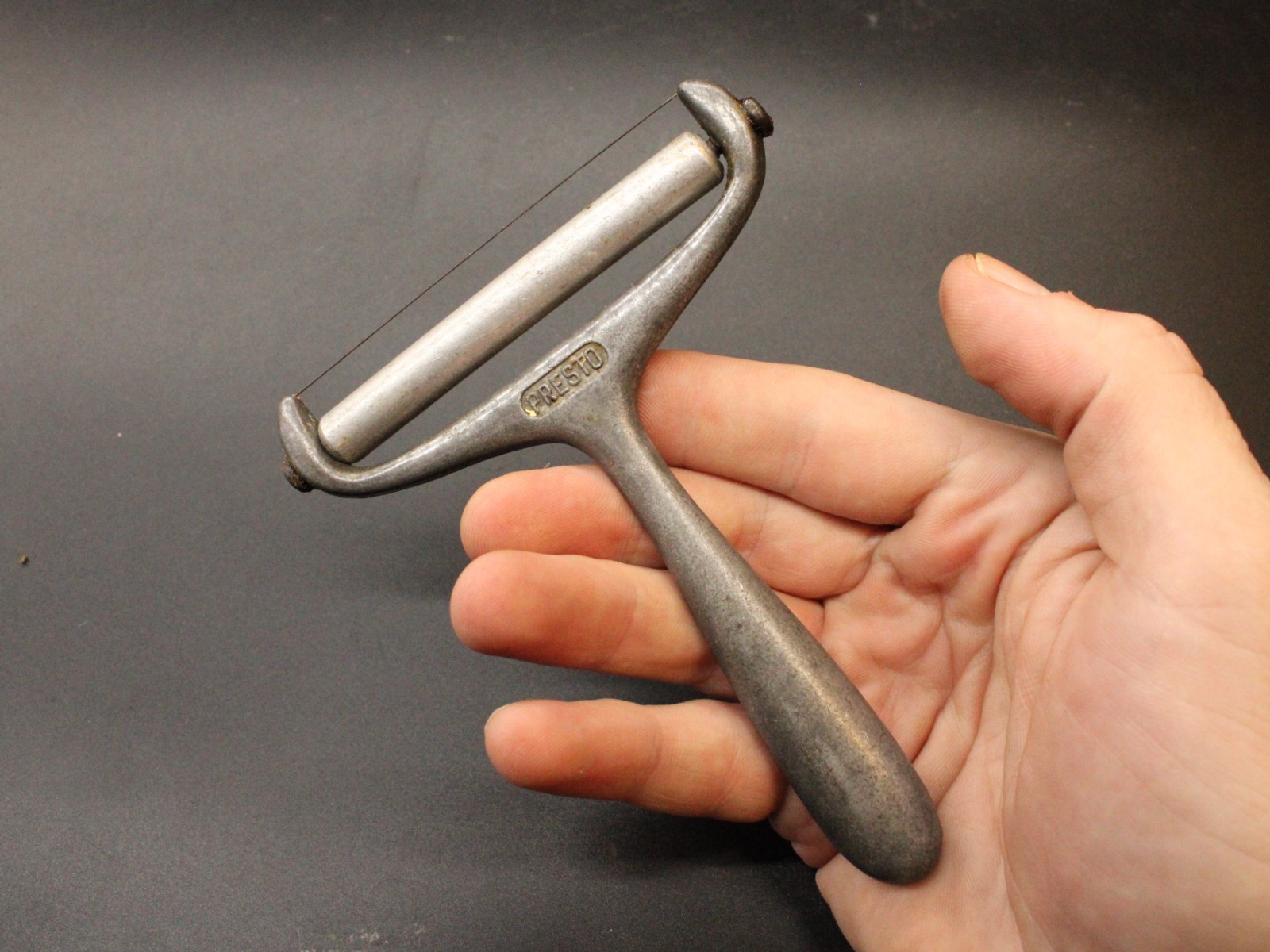 Sale! Vintage Kitchen Utensil – Presto 5″ Aluminum Cheese Slicer Cutter With Roller$11.99 Original price was: $11.99.$9.99Current price is: $9.99. Good ITEM ID: 47188Buy Here, or Buy From Our eBay Store1 in stock Vintage Kitchen Utensil - Presto 5" Aluminum Cheese Slicer Cutter With Roller quantity Add to cart All items in-hand and ready to ship FREE DOMESTIC SHIPPING on all orders Customers Rate us on eBay 10/10! Category: Peelers & Slicers Brand: Presto Pinterest Facebook Twitter Reddit Description Additional information Description Small vintage kitchen utensil – a presto cheese slicer in good condition. Also check out my other vintage kitchen utensils for sale! Pinterest Facebook Twitter Reddit Additional information Dimensions 4 × 4 × 4 in Condition Used Condition Description Good Brand Presto Any questions about this product? Or do you need any help ordering? Feel free to get in touch with our support department at support@locla.co or use our contact form. We're happy to help!