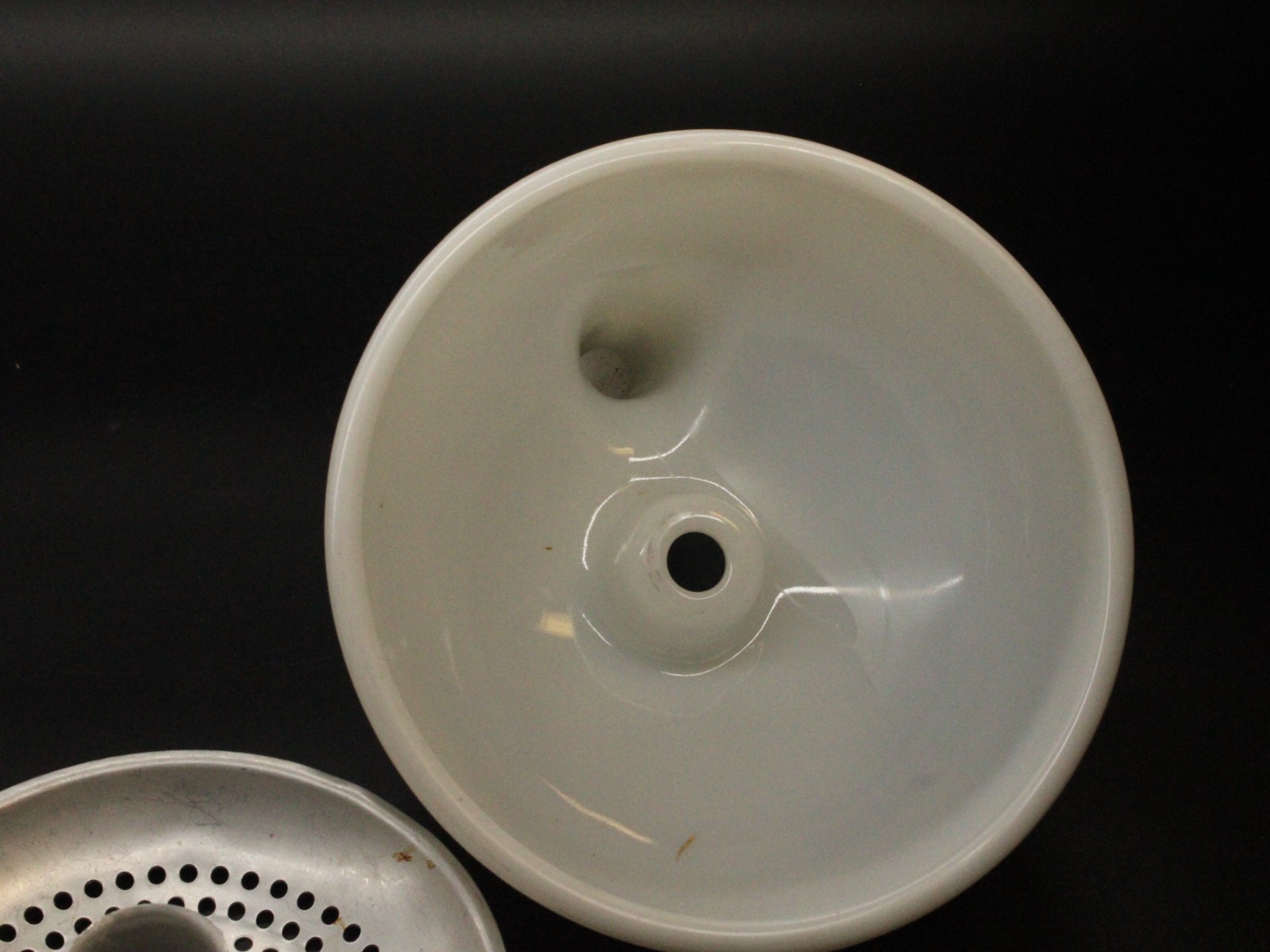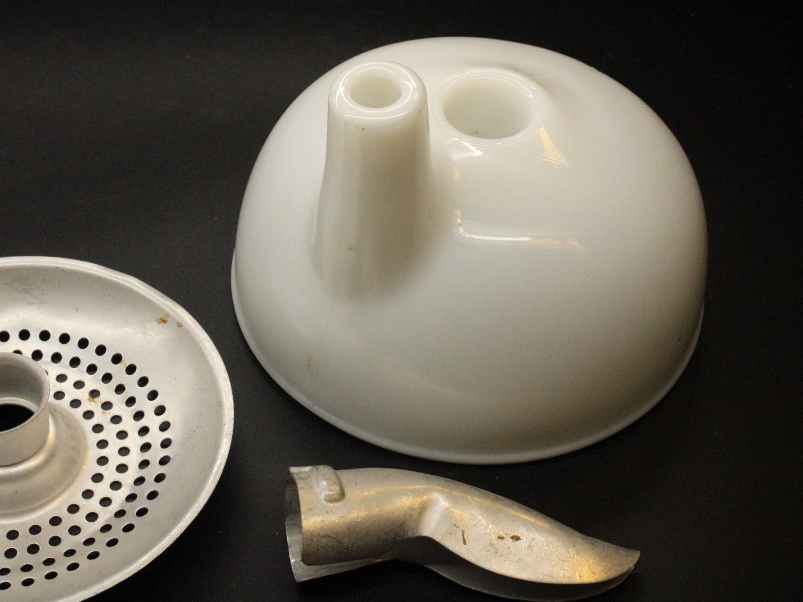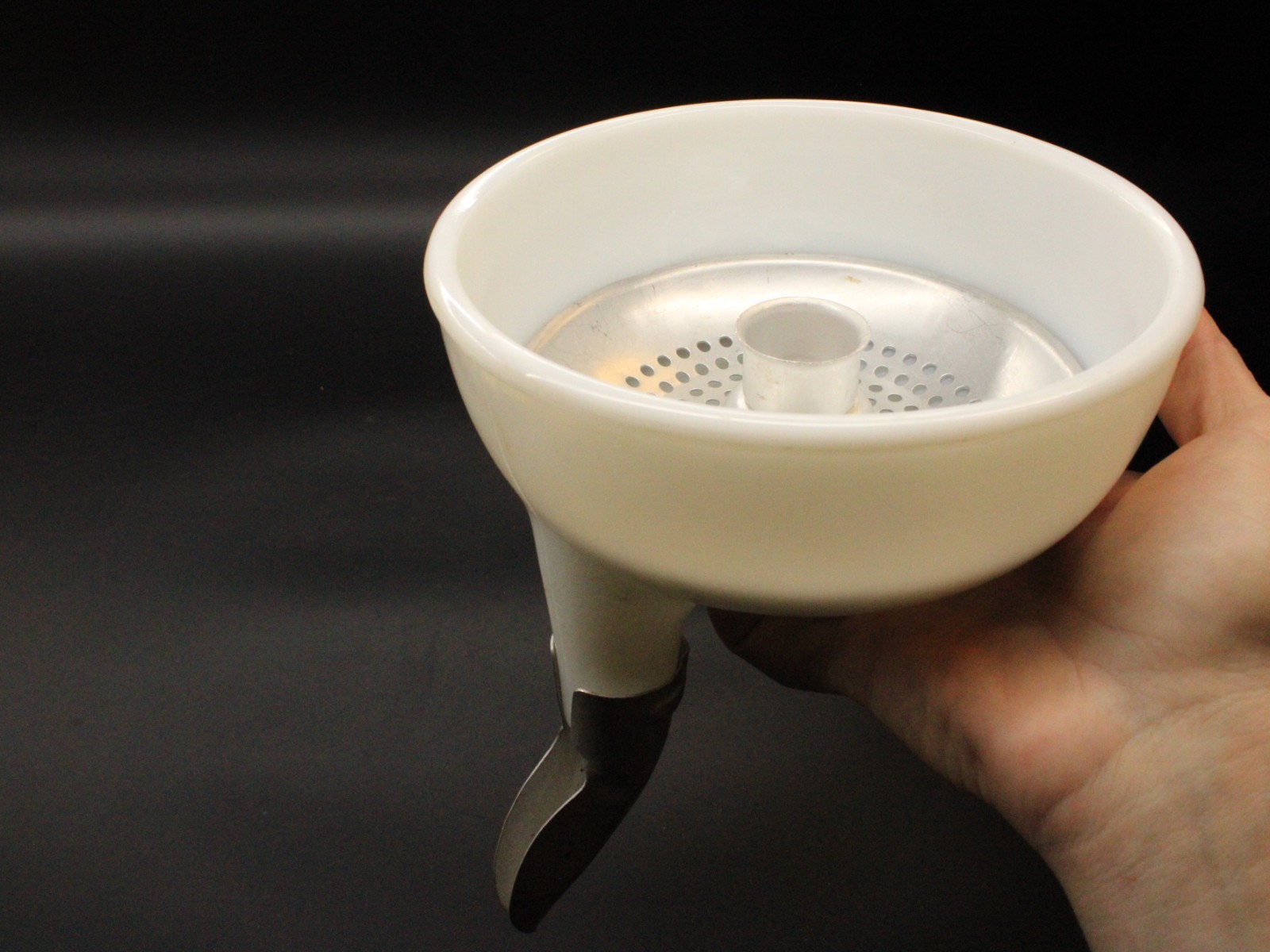 Sale! Vintage Sunbeam Mixmaster Milk Glass Juicer Bowl Attachment & Strainer Spout$23.99 Original price was: $23.99.$19.99Current price is: $19.99. Used condition, no breaks or chips. ITEM ID: 47282Buy Here, or Buy From Our eBay Store1 in stock Vintage Sunbeam Mixmaster Milk Glass Juicer Bowl Attachment & Strainer Spout quantity Add to cart All items in-hand and ready to ship FREE DOMESTIC SHIPPING on all orders Customers Rate us on eBay 10/10! Category: Juicers Brand: Sunbeam Pinterest Facebook Twitter Reddit Description Additional information Description Milk glass piece measures 7″ across the mouth (top). The other 2 pieces included are aluminum, and this is likely from an older Mixmaster. In good used condition, no breaks or chips. Pinterest Facebook Twitter Reddit Additional information Weight 2 lbs Dimensions 11 × 8 × 6 in Condition Used Condition Description Used condition, no breaks or chips. Brand Sunbeam Related products Sale! Vintage Wear Ever Aluminum Citrus Juice Squeezer Strainer Hand Press USA $19.99 Original price was: $19.99.$16.99Current price is: $16.99. Add to cart Any questions about this product? Or do you need any help ordering? Feel free to get in touch with our support department at support@locla.co or use our contact form. We're happy to help!
